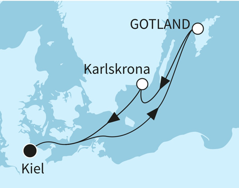 Adria: >>> Palma (Mallorca), >>> Cagliari (Sardinien), >>> Palermo (Sizilien), >>> Valetta (Malta), >>> Korfu (Griechenland), >>> Kotor (Montenegro), >>> Dubrovnik (Kroatien), >>> Split (Kroatien), >>> Venedig (Italien) – (Sept/Oktober 2017)