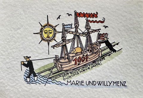 1959 - "Möge das neue Jahr uns alles erhalten und uns bewahren vor Krieg und Untergang. Marie und Willy Menz 1959."