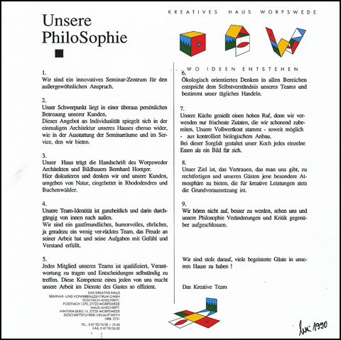 "Das Kreative Haus" in Worpswede zu einem überregional bekannten Ort für mentales Training und Visionen.