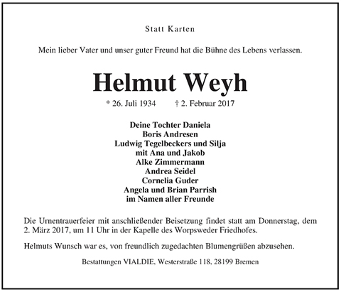 In Erinnerung an Helmut Weyh (1934-2017):