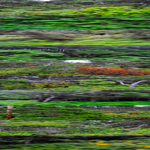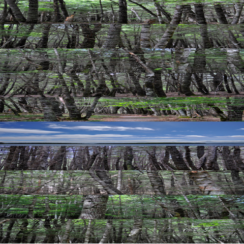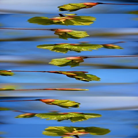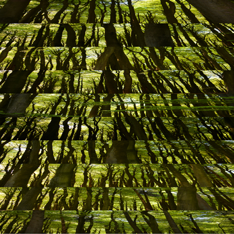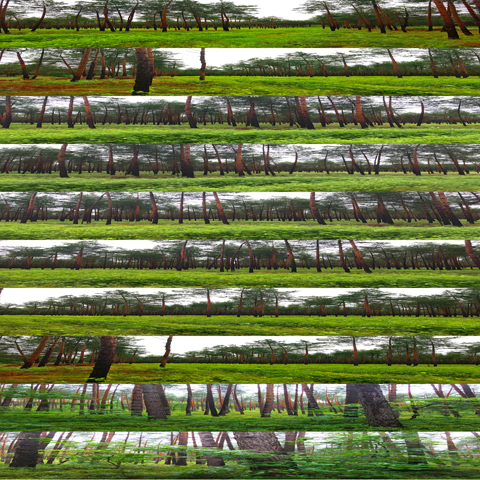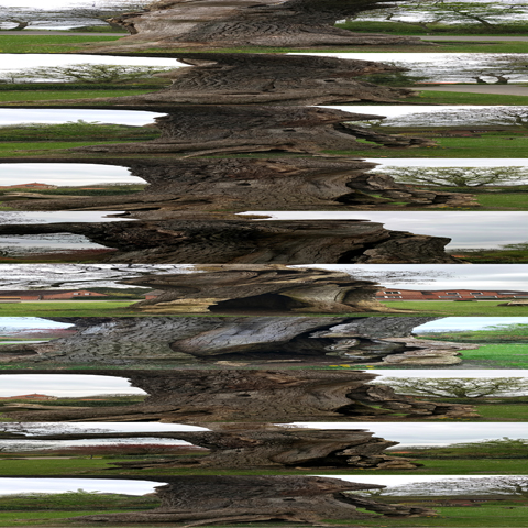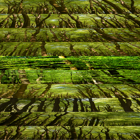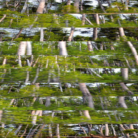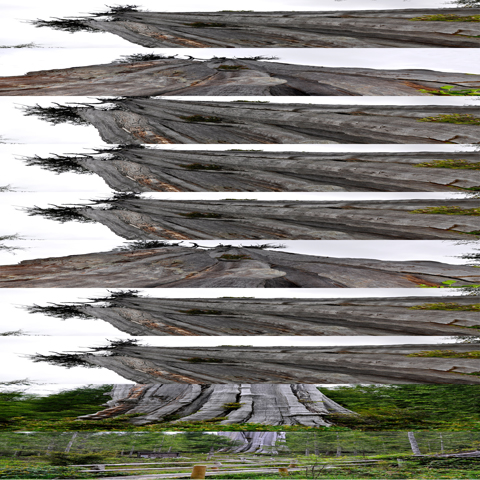 Die horizontale Kompression von 10 Einzelbildern und deren vertikale Schichtung ergeben ein Werk, das Formen und Farben zu einem neuen Bild verschmilzt und darin den Spirit des Ortes erfasst.