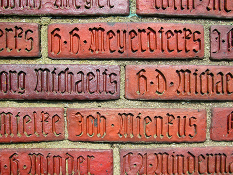 Das Denkmal besteht aus einer Ringmauer, die auf der Innenseite mit rund 10.000 Namenssteinen aus Klinkern in unterschiedlichen Farbtönen verblendet ist. Durch einen altarähnlichen, auch als Kenotaph zu charakterisierenden Steinblock in der Mittelachse bekommt die Anlage einen entschieden sakralen Charakter. Ihm gegenüber, außerhalb des Dreiviertelkreises steht die Skulptur einer Mutter mit Kindern. >>> (Wikipedia 2017)