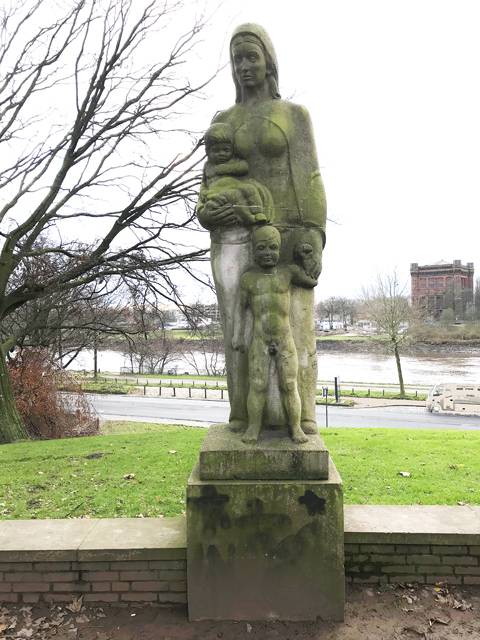 Skulptur Mutter mit Kindern des Bremer Bildhauers Ernst Gorsemann (1886-1960) gegenüber dem Ehrenmal. Diese Figur wurde 1936 zum Ehrenmahl hinzugefügt. Sie wurde kurz vor Ende beschädigt und in einer Neufassung von 1945 bis zum Tod des Künstkers 1090 neu geschaffen. 1963 wurde die neue Figur aufgestellt.