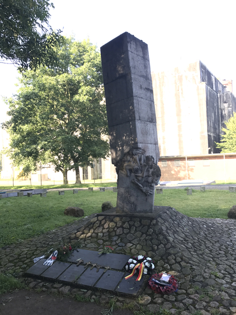 Nach einer längeren Diskussion wurde 1983 am Eingang ein Mahnmal "Vernichtung durch Arbeit" zur Erinnerung an die Opfer des Bunkerbaus errichtet. Die Betonplastik schuf der Bremer Künstlers Fritz Stein.