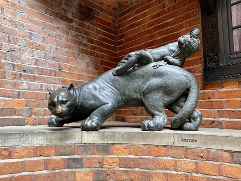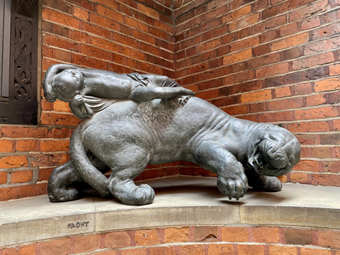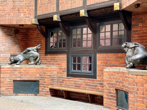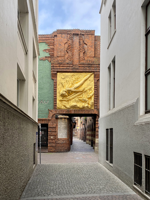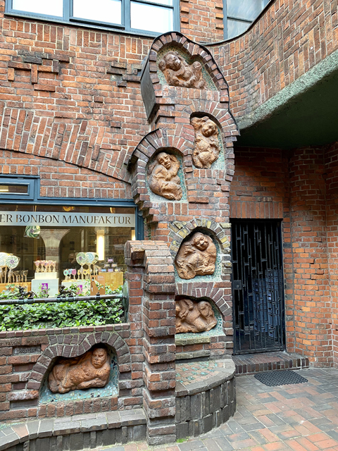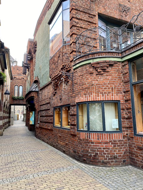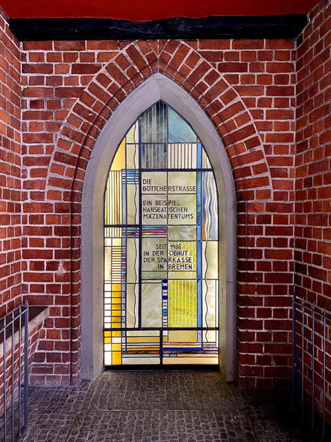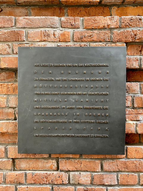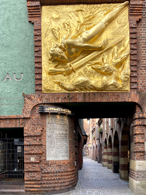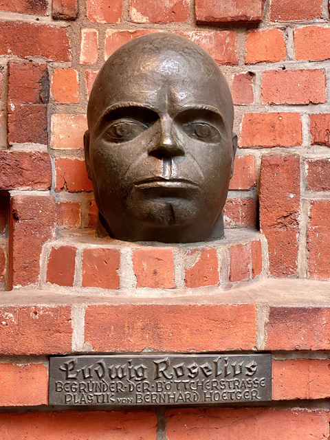 Die Böttcherstraße ist eine etwa 100 m lange Straße in der Bremer Altstadt. Die meisten Gebäude sind in der Zeit von 1922 bis 1931 entstanden und hauptsächlich Ludwig Roselius (1874–1943) >>> , einem Bremer Kaffeekaufmann und Mäzen, zu verdanken. Roselius beauftragte den Bildhauer, Maler, Architekten und Kunsthandwerker Bernhard Hoetger (1874–1949) >>> mit der künstlerischen Gestaltung.