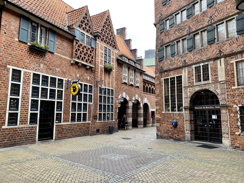 Nach Plänen der Architekten Alfred Runge und Eduard Scotland >>>entstanden von 1923 bis 1926 das Kaffee-HAG-Haus, das Haus St. Petrus, das Haus des Glockenspiels sowie andere Bürogebäude. Die Häuser wurden mit den damals typischen Materialien Backstein und Sandstein errichtet.