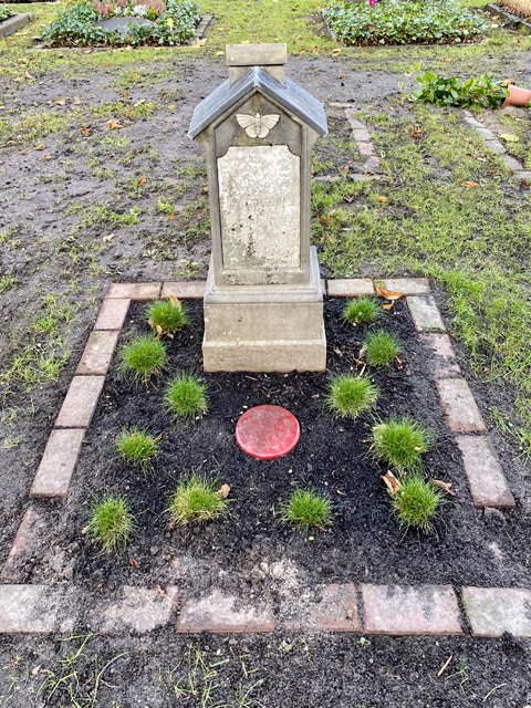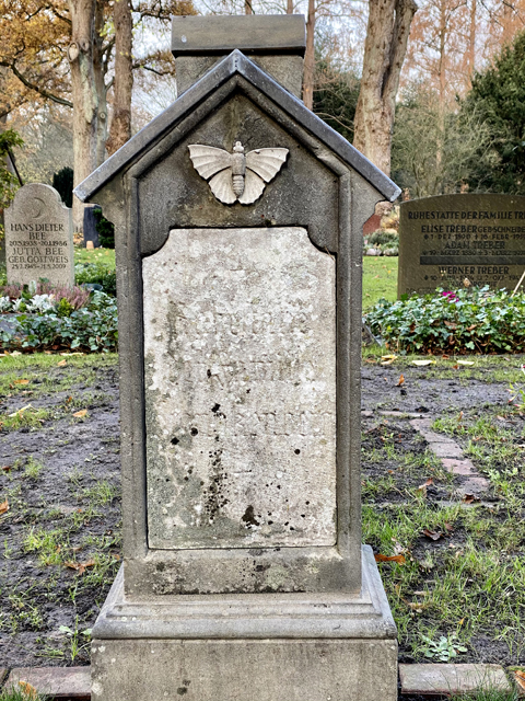 Du glaubst es kaum - als ich heute vom Krematorium auf dem Riensberger Friedhof kommend den Weg AA/BB Richtung Ausgang ging, fiel mein Blick kurz vor dem Urnenraum an der Verwaltung auf die Rückseite eines kleinen Grabsteins mit einem Häuschen darauf. Es war dein, in der Silhouette prägnanter, Stein!