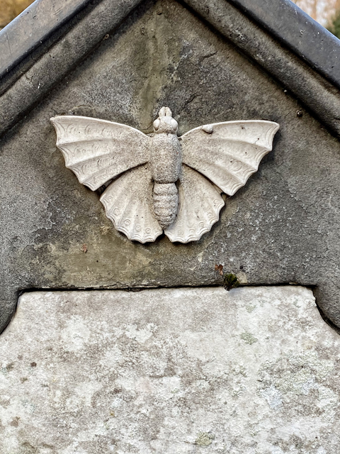 MW: Hast Du als Künstler das Thema „Vergehen“ oder die Form des Grabsteins ästhetisch/thematisch verarbeitet? Gibt es Skizzen, Zeichnungen oder Bilder mit dem prägnanten Motiv des Grabsteins, der als Architektur wirkt und auf dem ein Medaillon mit einem relieffierten Schmetterling als Symbol der Wiedergeburt und Auferstehung appliziert ist?