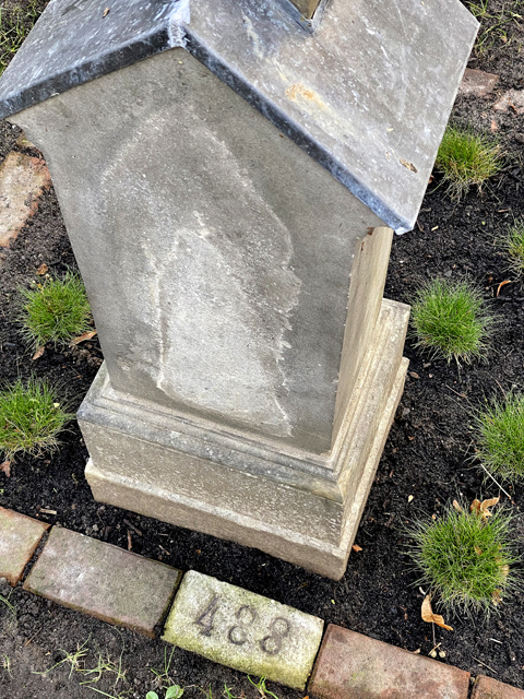 JM: Bei einer Begehung des Friedhofes mit einem Angestellten der dortigen Friedhofsverwaltung, fiel mir dieses, wegen Unfallgefahr gekennzeichnete, Grabmal sofort ins Auge und ich bekundete umgehend mein Interesse falls sich etwaige Angehörige dafür nicht zuständig fühlen würden.