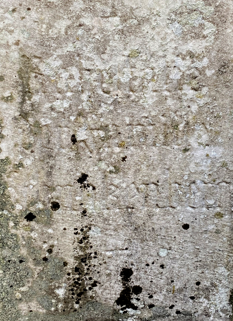 MW: Wie bist Du auf den Grabstein gestoßen, der jetzt auf der Grablage B 488 zu finden ist. Von woher kam dieser Stein? Kennst Du die Namen und die Lebensdaten zu denen er einst gehörte?
